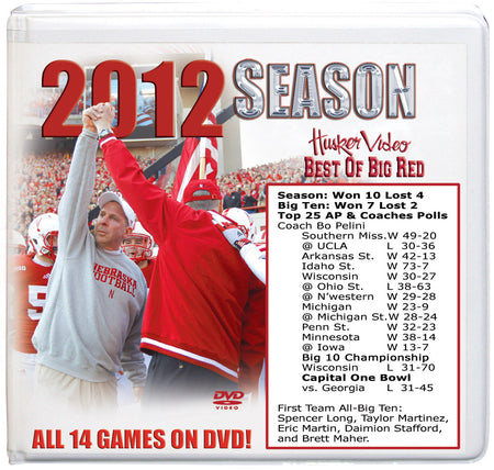Nebraska gains traction in its second run through the Big Ten. The Huskers stumble early on the road in Pasadena but make a vow to return to the Rose Bowl in January, only to fall short to Wisconsin in the Big Ten Championship Game. The "Comeback Kids" rise from the ashes to make a string of second-half, come from behind wins that defy probability as they overcome double digit deficits late against Wisconsin, Northwestern, Michigan State and Penn State. Tim Beck's offense gels with the leadership of Taylor Martinez and playmakers like Kenny Bell, Jamal Turner, Quincy Enunwa, Kyler Reed, Ameer Abdullah and others. Senior Heisman hopeful Rex Burkhead makes a spirited effort to overcome frustrating knee problems before sitting out the middle stretch of the season and returning for the final games. T-Magic becomes the all-time Nebraska career yardage leader in his Junior season, mesmerizing fans and pundits with electric bursts through stunned defenses. The Blackshirts struggle to maintain consistency, but when "on" they are unmatched in their ability to shut down offenses. Daimion Stafford, Eric Martin, Baker Steinkuhler and Ciante Evans harass and blast QB's, receivers and backs. The Huskers once again earn a trip to the best non-BCS bowl with an invitation to play the National Title contending Georgia Bulldogs in the Capital One Bowl. All 14 games in their entirety with radio broadcast for audio. DVD