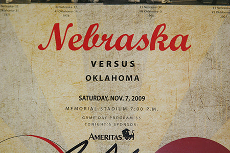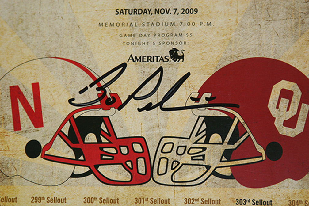 303rd Consecutive Sellout was a big one! OU came to town and NU took care of business as coach Pelini led NU past OU 10-3 in a defensive battle in front of a raucous night-game crowd. It will likely stand as our only OU victory between 2001 and 2020 - a key moment in Husker History, and a coming out party for Ndamukong Suh. Game program hand signed by coach Pelini, CofA included.